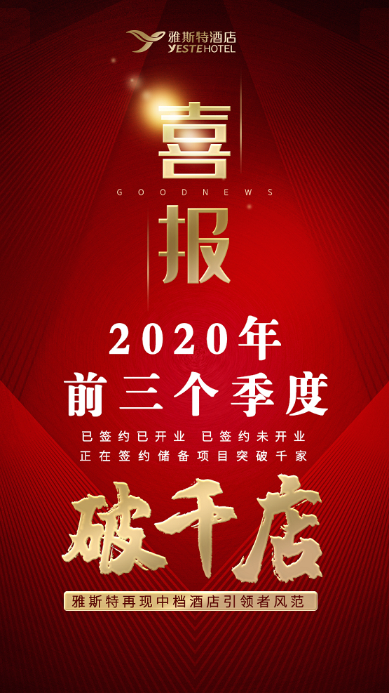 2020年,新冠病毒对酒店业影响颇深,但雅斯特依旧逆势扩张,10月单月签约项目破百更是创下近期以来签约量新高,让业界看到了雅斯特酒店集团的发展实力,为今年四季度和2021年的新店开拓“战争”打响了振奋人心的一枪。2020年底,雅斯特将提前一年实现2021年品牌国际年“在营、在建、签约门店1200家以上”的目标、提前完成区域国际“百城千店”的战略布局!