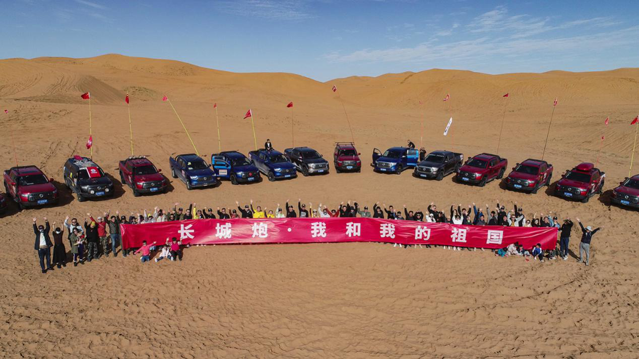 10月初,长城炮官方车友会“炮火联盟”近百名车主出征阿拉善,玩转英雄会,在大漠黄沙中刷锅冲坡,体验极致穿越的乐趣。同时,车主们手挽手齐声高歌《我和我的祖国》,共同庆祝祖国71华诞,并团队协作,画出了一台又一台个性张扬的DIY长城炮。在这场辉煌盛大的越野嘉年华中,他们还与摇滚老炮周晓鸥一起点燃热情的沙漠。