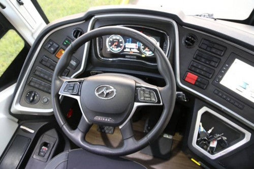 海格旅行家用内外兼修来说不足为过,走进车舱内部以后看到驾驶区就有种想让人驾驶这辆客车的冲动。港湾式工作台完全围绕着驾驶员为中心布置,各种零部件触手可及。而且工作区还使用银色的装饰条分割,非常的直观。