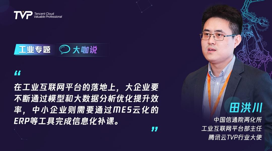 会议伊始,中国信通院两化所工业互联网平台部主任田洪川,基于对工业互联网平台多年的深入研究,首先便开宗明义地对工业互联网平台做了定义,他认为,工业互联网平台是一个“海量数据采集、汇聚和分析的载体”,并且具有以下四大特点。