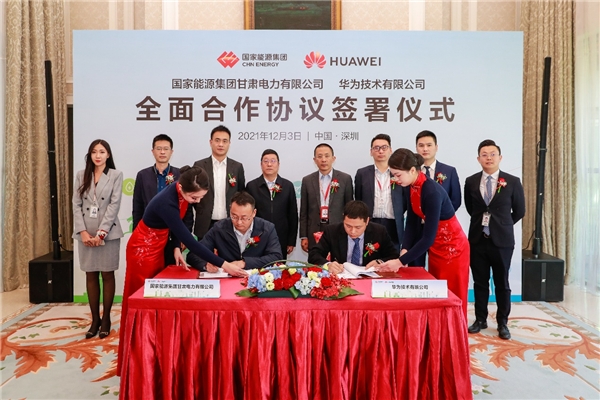 12月3日,国家能源集团甘肃电力有限公司(以下简称国家能源集团甘肃公司)与华为技术有限公司(以下简称华为)在深圳签署框架合作协议。国家能源集团甘肃公司党委书记、董事长付建斌,副总经理、党委委员王克挺,华为数字能源首席战略执行官张峰,华为甘肃总经理王宏有、华为甘肃数字能源总经理柳超等共同出席了本次签约仪式。王克挺、柳超分别代表双方签约,付建斌、张峰、王宏有现场见证签约。