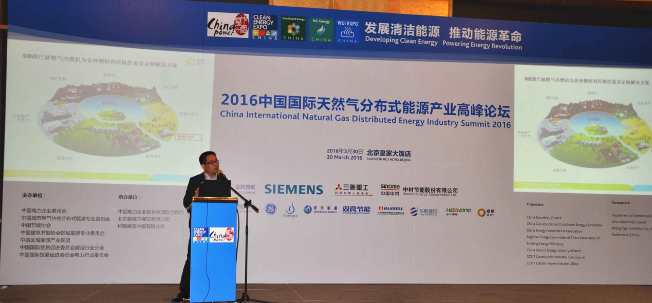 2016年3月30日,2016中国国际天然气分布式能源产业高峰论坛在北京皇家大饭店圆满落幕。此次论坛由中国电力企业联合会、中国城市燃气协会分布式能源专业委员会、中国节能协会、中国建筑节能协会区域能源专业委员会联合主办。