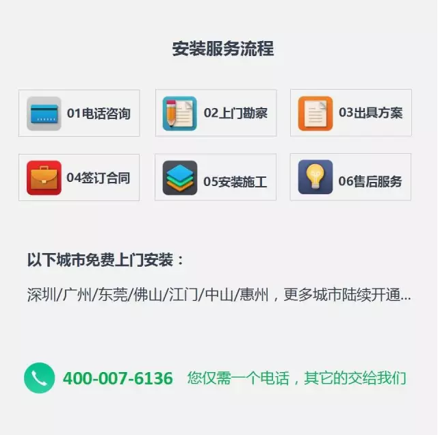 广东省内深圳、广州、东莞、佛山、中山、江门、惠州用户,可享受免费上门安装服务,并且在2016年9月31日前安装的用户,还可享受