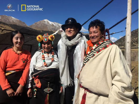 <成龙先生(右二)和杂多当地藏民合影>