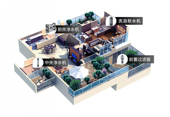 全屋净水顾名思义就是净化整个家庭用水,一般来说一套完整的全屋净水包括:前置过滤器,中央净水器,厨房净水器,中央软水机,末端直饮机,最后还可以加一个可以加热的管线机。之所以能够受到广大消费者的青睐,是因为通过一套完整的全屋净水产品,可以令家中每一个水龙头流出经过专业净化的净水,确保无论是饮用、还是餐厨洗涤、沐浴洗脸和日常洗衣用水,都能得到净化和保护,全方位呵护家庭成员的饮用水健康。