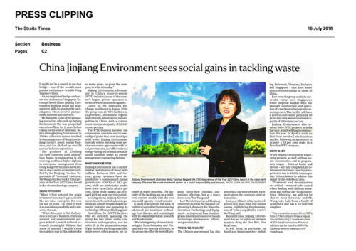 近日,中国锦江环境控股有限公司(以下简称“锦江环境”)董事长王元珞接受了《海峡时报》、《新加坡商业时报》专访,二者分别以《中国锦江环境在垃圾处理方面取得社会效益》、《中国锦江环境解决垃圾问题》为题报道了锦江环境的专业度与企业文化。