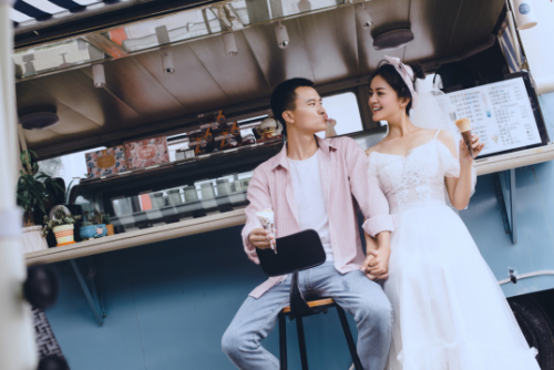 新娘平日要留心培养对服装的品味,并了解自己容貌和身材的特点,并提前到婚纱店去试穿。摄影机构所提供的婚纱礼服依新、旧程度,价格有较大的差别,新人要根据自己的预算,实事求是的去做最好的选择。至于款式则不要给自己设置太多的限制,高矮并不重要,找到适合自己身材比例的礼服才是关键。
