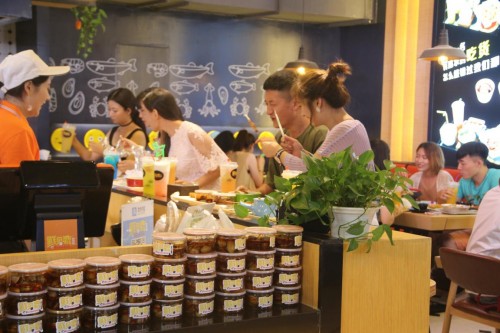 鲜贝恋有着高水准的美食团队和强大的产品阵容,它的砂锅米粉、蒜蓉粉丝焗烤生蚝、酸辣芝士花甲粉、酱焖小海鲜等美食都深得顾客的喜爱。在这里,排队是普遍现象,很多妹子连妆都不化,连睡衣都没换,就为了能先让嘴巴过过瘾。再看店里的小哥哥们,似乎也都把注意力放在海鲜美食的身上,而对旁边身材火辣的妹子却显得兴趣缺缺。嗯,这样对比之下,鲜贝恋街头小吃的魅力似乎也太大了。