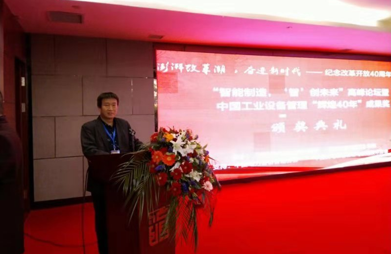 中科博宏云平台产业研究院李杰浩院长出席“中国工业设备管理改革开放辉煌40年”颁奖大会并发表《中科能源云平台助力智能制造2025风电智慧巡检》的演讲。