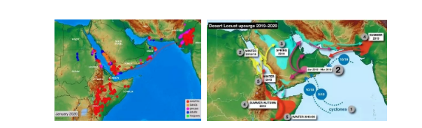 联合国粮农组织公布的不同形态蝗虫分布图和沙漠蝗虫迁徙图