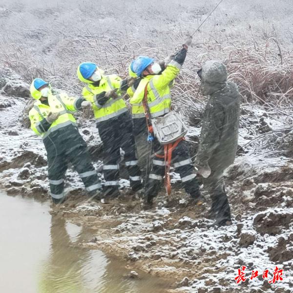 武汉供电部门全力抢修恶劣天气跳闸供电线路。长江日报 图