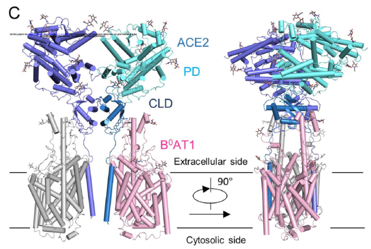 受体ACE2-B0AT1复合物:呈现开放和关闭两种构象