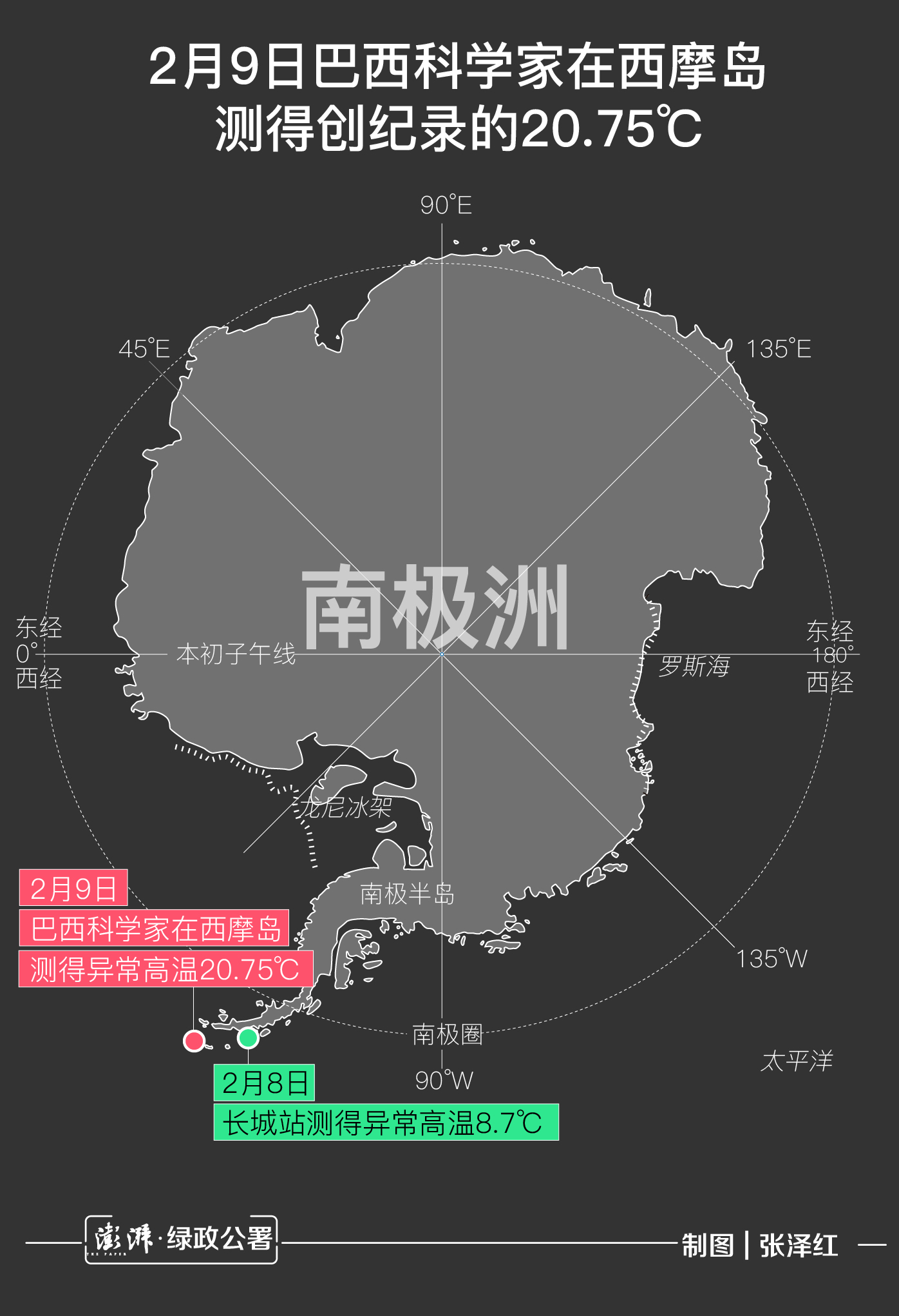 2月7日,世界气象组织公布消息称,在南极半岛阿根廷科考站埃斯佩兰萨观测到18.3℃,这一记录打破了了2015年3月24日曾记录到的17.5℃的南极大陆观测到的最高温度。
