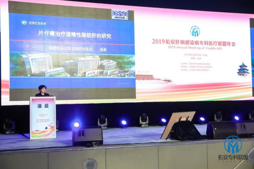 由佑安肝病感染病专科医疗联盟主办,首都医科大学附属北京佑安医院承办的“2019年佑安肝病感染病专科医疗联盟年会”于2019年12月14日在北京国际会议中心隆重开幕。会议邀请百位联盟医院主要领导、相关科室主任、业务骨干参会,总参会规模达到1000人以上。漳州片仔癀药业作为本次学术大会受邀企业,特邀中国中西医结合学会肝病专业委员会副主任委员、福建医科大学孟超肝胆医院潘晨教授在大会上作《片仔癀治疗酒精性脂肪肝研究》的专题报告,联盟理事长、北京佑安医院院长金荣华与联盟执行理事长、中华医学会肝病学分会主任委员段钟平共同主持专题会议。