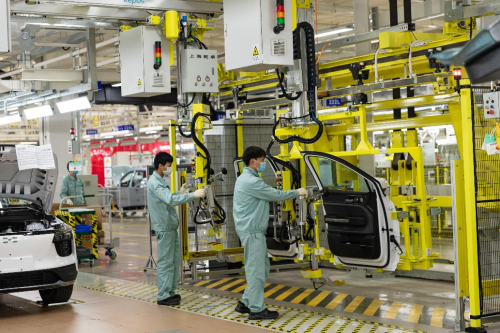 爱驰汽车以德国工业4.0标准打造的“物理+数字”超级智慧工厂,凭借高度自动化、智能化、数字化以及柔性化的优势,为疫情期间的整个生产流程提供了很大的支持。特别是涂装车间自动化率高达90%以上,避免了疫情期间人员缺岗所带来的问题;得益于高度灵活的柔性化生产管理体系,能够对市场的变化迅速做出反应,根据实际情况调整生产计划。