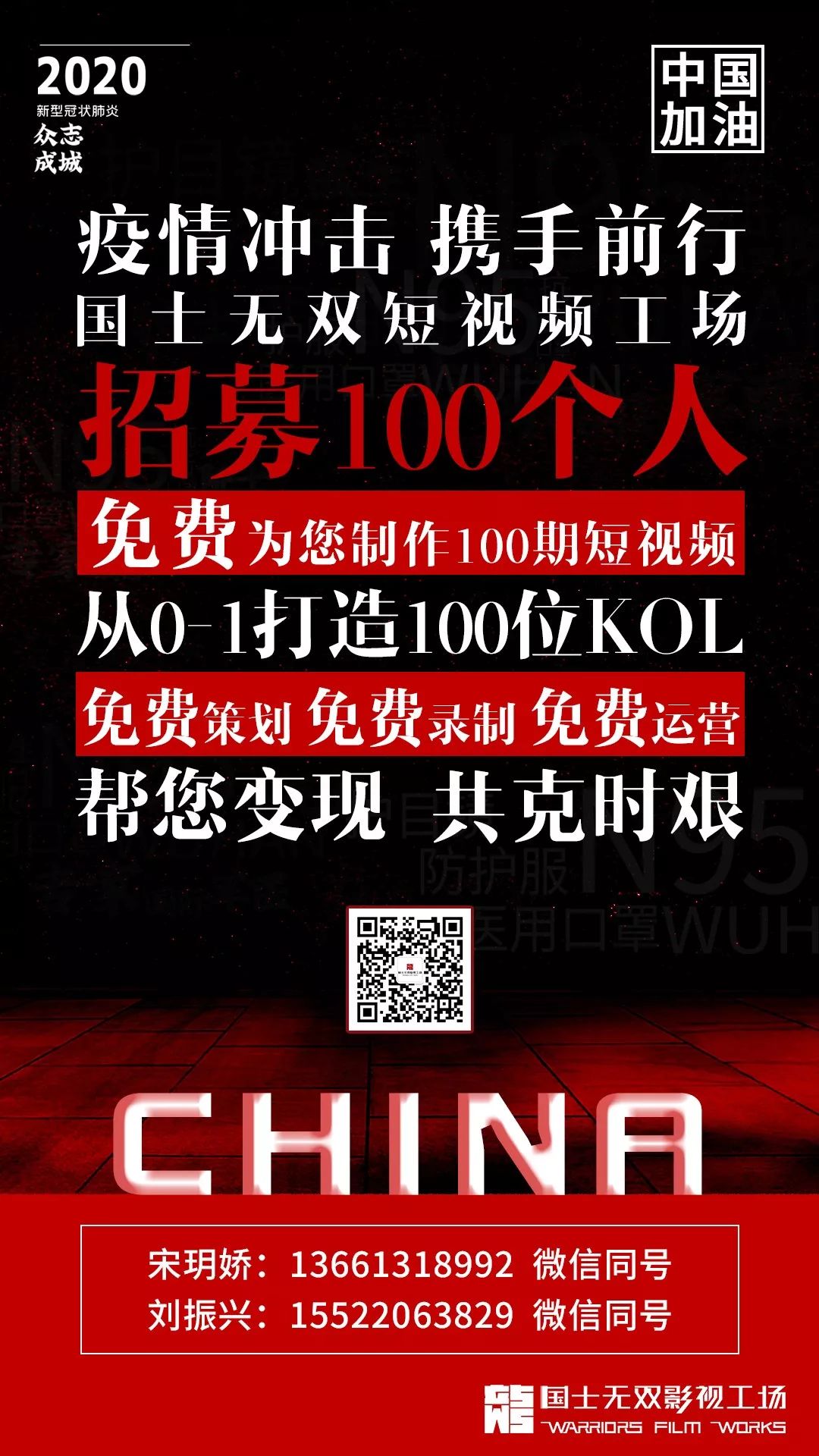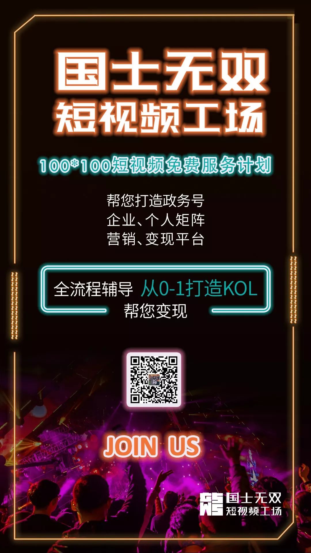 2020年,国士无双短视频工场100*100短视频免费服务计划正式起航,未来,期待更优秀的您加入我们!