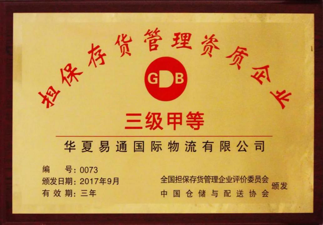 华夏易通国际物流有限公司成立于2014年9月,拥有现代化厂区面积122535平方米,员工近400人,主营金融物流监管、港口货物仓储运输两大业务,是一家创新型、开放式、综合性的现代化金融物流高新技术企业。公司先后被评为“国家级高新技术企业”“全国金融仓储十强企业”“全国先进物流企业”“信用AAA级企业”等资质;被授予“辽宁省优秀民营企业”“锦州市五一劳动奖状”“锦州市先进职工之家”“和谐职工之家”“先进基层党组织”等荣誉称号。