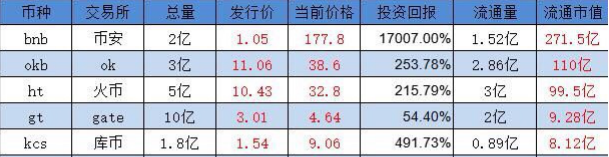 从上面这个表格中看到,平台币几乎没有让我们失望过,最高收益率是BNB,高达17000%,最低是GT,也有50%以上。