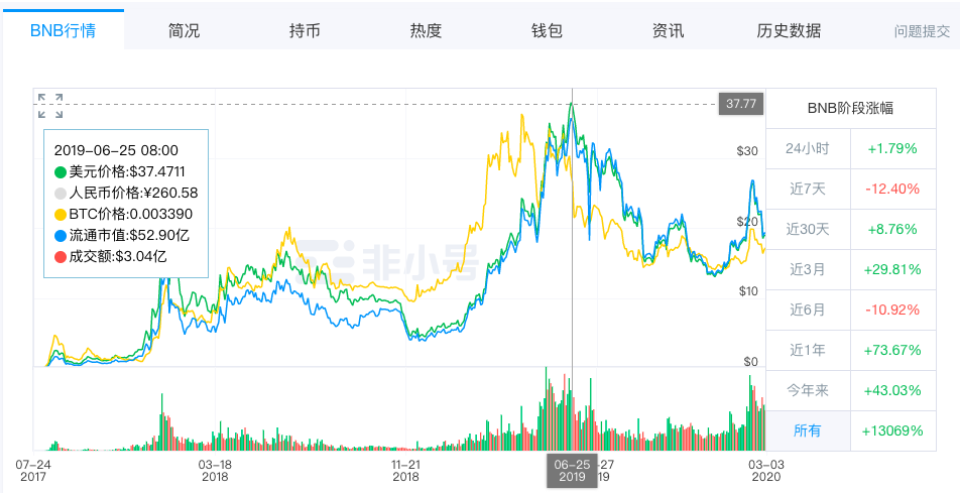 这里不得不科普一下,平台币其实最早源自币安,BNB可能是主流交易所平台币里唯一跌破过发行价的。