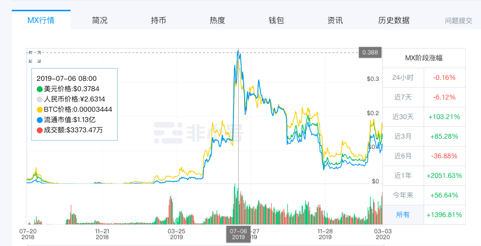MX发行价近0.01美金,最高涨至3块