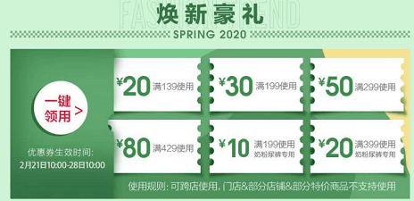 可一键领用210元大额优惠券,其中最高可立减80元,可跨店使用,但是门店&部分特价商品不支持使用!