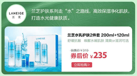 兰芝护肤系列走“水”之路线,高效保湿净化肌肤,打造水光健康肤质,奥买家全球购限时钜惠¥265,小仙女必备哦!