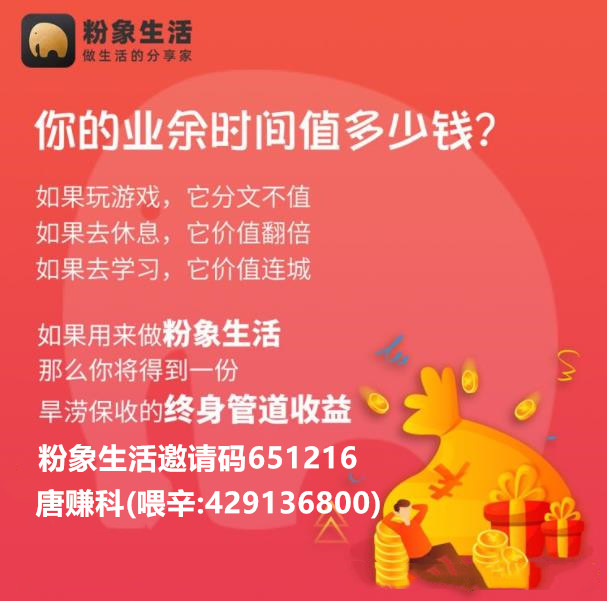 吾本布衣唐赚科也。深耕网路十载,废寝苦得万人团。偶入粉象,惊回首;零投资,轻副业,月入十万不是梦!广募四海八荒之英豪,送尔铿锵引流,教我们磐石屏霸。期年之后,君云游四海,传道众生曰:“赚银两,是这个世界上最简单滴事”。附录:粉象生活邀请码651216为葵花宝典之秘籍也,更多内功心法请度娘:唐赚科。