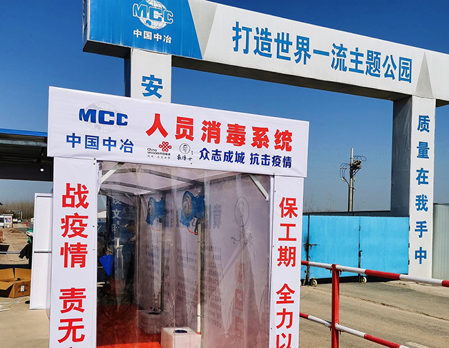 当人员进入到消毒通道时,消毒系统会自动触发,系统自动将配置好的次氯酸水经强力的离心器雾化成极其细小的药雾,雾粒直径>PM2.5,并由高速离心喷头将药雾均匀喷洒在消毒通道的空间,从而使消毒空间布满浓密的消毒喷雾,加上增效剂的弥散、延展、渗透作用,药雾会覆盖受消毒人员的全身甚至是细小的缝隙,有效灭活附着在人体毛发、体表、衣物等部位上的致病微生物,从而实现全面的、立体的、无死角的人员消毒。