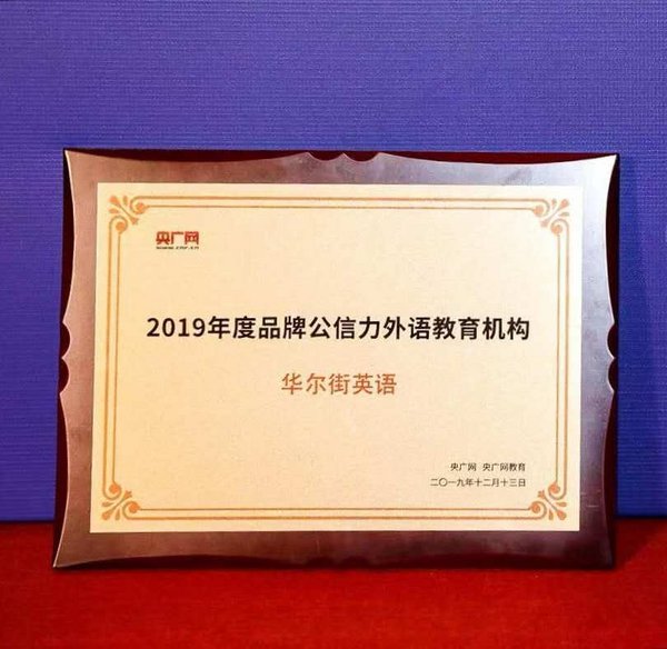 华尔街英语荣获央广网“2019年度品牌公信力外语教育机构”奖
