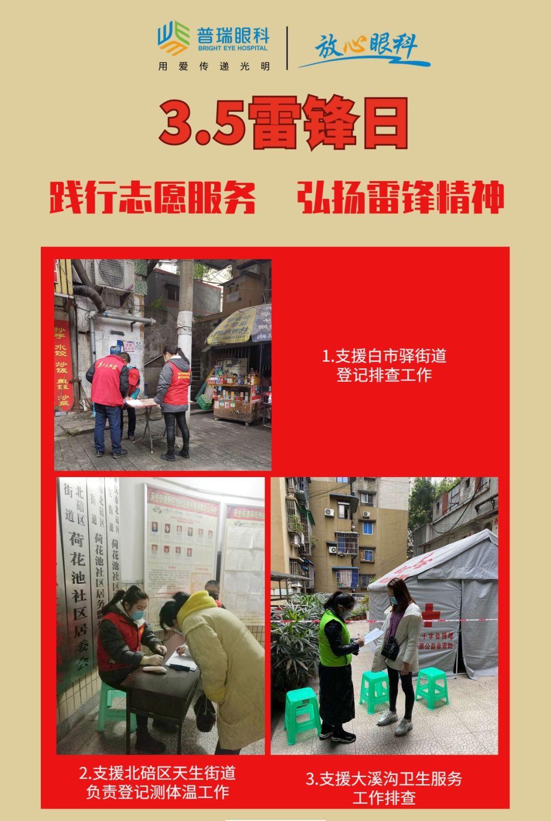 “人的生命是有限的,为人民服务是无限的。我要把有限的生命投入到无限的为人民服务之中去”。在人民群众坚持抗疫的同时,重庆普瑞眼科医院在党支部、共青团的领导之下,医院员工广泛参加志愿服务,在这场共同战疫中奉献着自身力所能及的力量,闪耀着大爱无垠的光芒。
