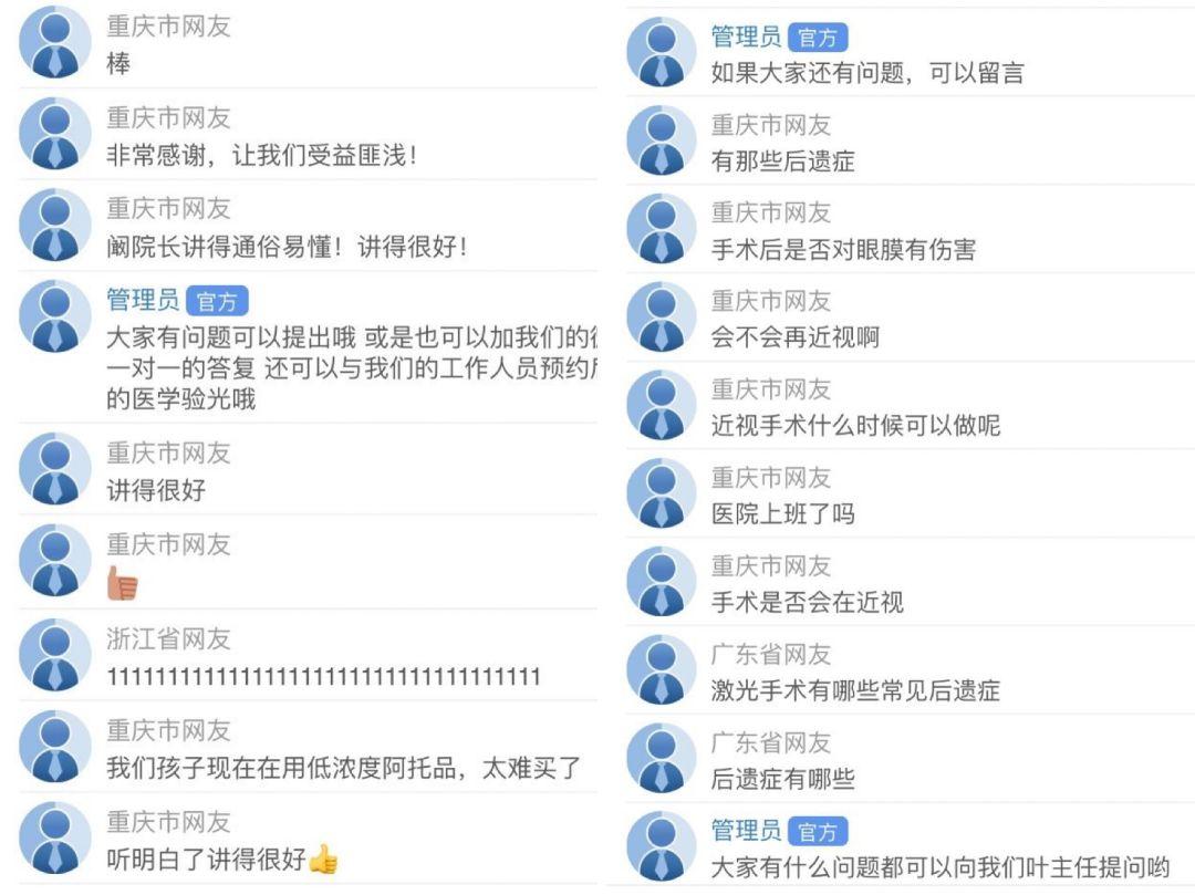 为了解决广大群众在家可能发生的眼部疾病问题以及孩子在家上网课的近视防控问题,重庆普瑞眼科医院开设了线上公益问诊群,线上进行直播科普,为大家足不出户即可解决眼部问题。直播当天收获了广大网友的热心称赞。能够获得了社会群众的高度认可,这也是重庆普瑞眼科医院在这场战疫中所获得的最好回报。