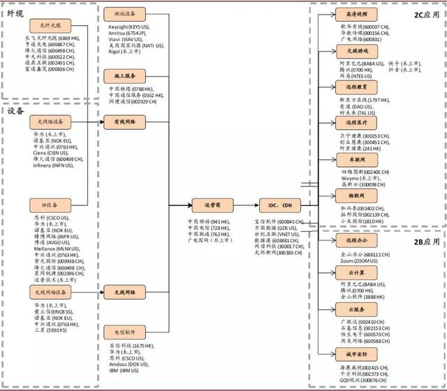 5G产业链关键公司图谱(来源:中金公司研究部)