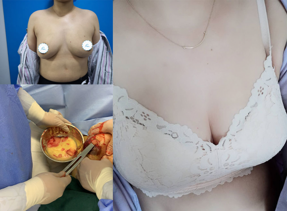对于胸部来说,因为比其他部位注射的量大,那么也就意味着它对周围组织的破坏是比较严重的,再取出的时候,经常是包块的形式,刚注射进去可能没有异常,后期定会出现。而且,由于它打的层次是不均匀的,各个层次都有,不光是乳腺组织里有,乳腺的腺体里也有,就是包括乳腺的导管都有。另外它会进一步的侵蚀到胸大肌,就是我们在临床上会看到,胸大肌里面也会有,甚至是说胸大肌到勒骨间隙都会有奥美定的存在。