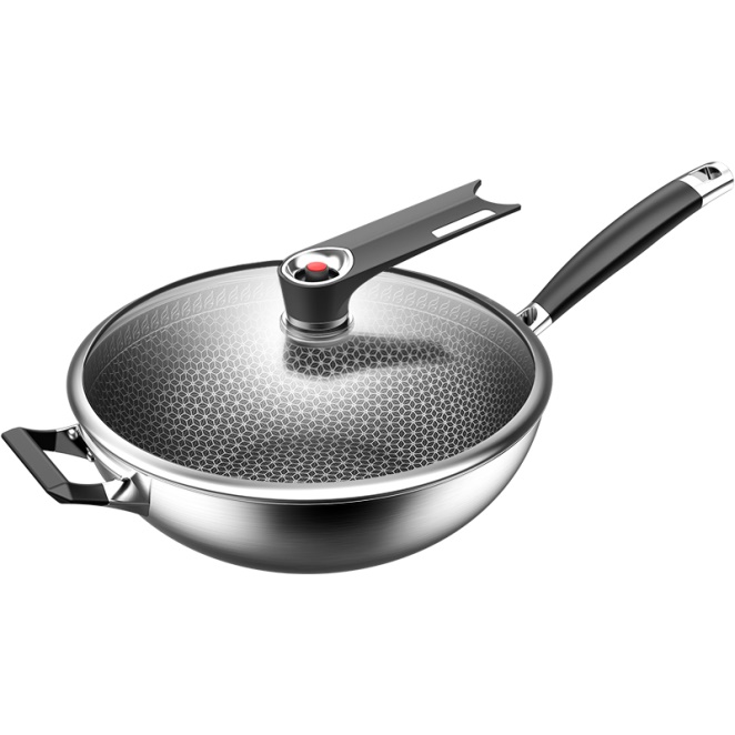 一般的不粘涂层锅底会有一层叫“特氟龙”的材质,特氟龙在高温下,会释放出十几种有害气体,直接对人体致癌,不利于人体健康。dumik(德玛克)的这款抗菌锅采用的是纯物理抗不粘技术,锅内采用了蜂窝式设计,含有不锈钢棱形钢网,0.03mm的轻微凸起 底部会产生微小的空气层 减少食品与锅的接触面积 将食物悬浮在锅壁物理颗粒之间,物理提升不沾效果,且锅的整体硬度很高,能够有效的防止铁铲、钢丝球对锅面进行伤害。