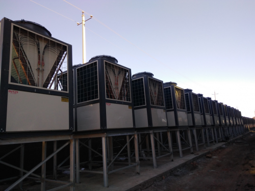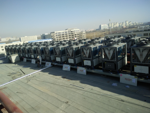 据了解,作为现今乌兰察布市最大的空气源热泵供暖项目,集宁区北方国际石材城供暖面积一共10万平米,项目供暖要求复杂,有办公楼、厂房、宿舍、商铺等,一共配置了93台48P的中广欧特斯超低温采暖机组,室内末端有地暖和暖气片。项目于2018年9月建成,目前已经稳定运行两个采暖季。