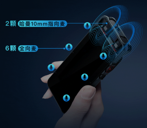 硬件配置方面,讯飞智能录音笔SR701配置2颗哈曼定向麦克风+6颗全向麦克风设计,可实现15米超长距离以及360度环绕无死角收声,结合自有的降噪技术,可很好地实现不同场景中的使用体验。