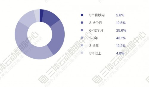 蝙蝠说,我是无辜的疫情影响了企业经营,打乱了2020年的规划,教练半待业在家,有部分人选择尝试线上发展,拍摄短视频、直播;有部分人开始寻找离家近,好上手工作,暂时短期过渡,缓解一下经济压力。据Boss、拉钩等招聘网站数据统计,因为疫情原因今年更多的居住三、四线城市的人,放弃了曾在一、二线城市的工作岗位,他们变得更加渴望离家近一些的工作,更加珍惜能陪伴家人日子。因为这只蝙蝠,使得2020年的开年离职率变得异常的高。有的人主动离职,也有的人被动离职了。这是50年一遇的非正常情况,那么正常的环境下,教练的多长时间下选择离职跳槽呢?2、教练平均跳槽周期 数据显示40.7%的教练会在1年内跳槽,这意味着每招聘5名教练,就有2名教练会在1年内离职,这将直接增加场馆的人员招聘成本和培养成本。