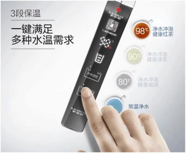 专利高端温控龙头(中国外观设计专利:ZL201730435226.9),特有“98摄氏度、90摄氏度、80摄氏度”三种不同温度,并可与常温净水随心切换,一键即饮,摆脱泡茶、冲奶接水时的漫长等待。无论是98摄氏度泡红茶、90摄氏度泡绿茶、还是80摄氏度泡咖啡,或者直饮常温净水都很便捷,宅家防护期间也能全方位满足全家人不同的饮水需求。