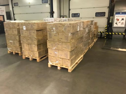 捷信捐赠的医用防护物资在布拉格机场准备装箱发往中国