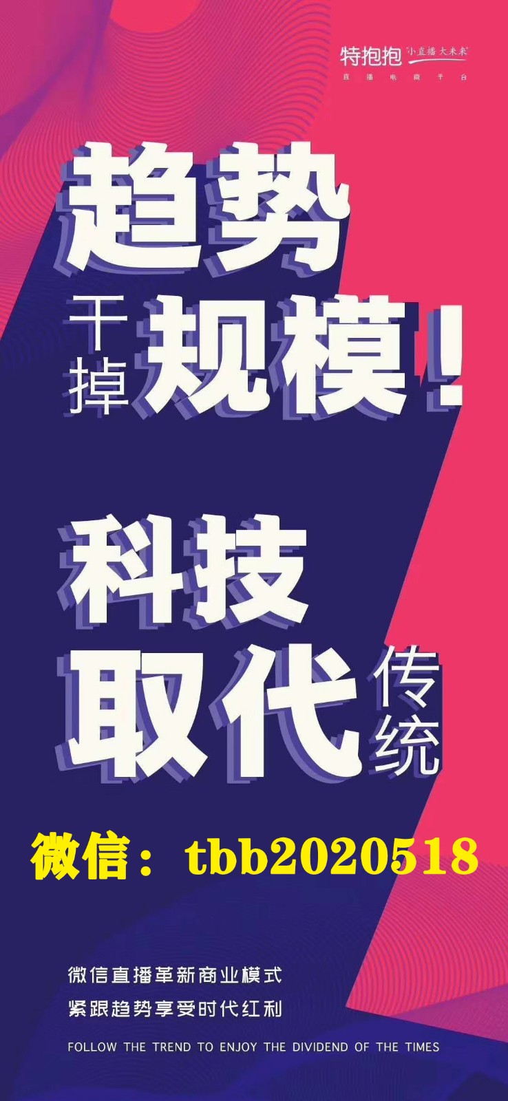 时代在变化,商业模式不同,淘宝是传统电商平台,特抱抱是社交直播电商,社交直播电商模式可以⾃动倍增、裂变、锁定消费终端,从平台到创业者再到消费者,是个⼈轻创业平台。从坐商-⾏商-电商-微商,现在是播商时代,是当前时代发展必然趋势!