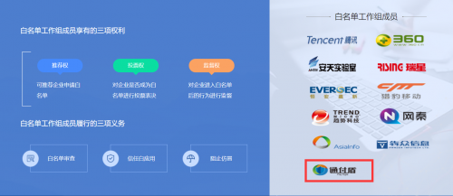 “白名单”是“移动互联网应用自律白名单”的简称,是2013年由中国反网络病毒联盟发起的自律性行业免费认证,对移动APP开发者进行可信认证。“白名单”有着严格的检测认证机制,申请企业开发的所有APP必须得到包括奇虎、猎豹、瑞星、腾讯、网秦、安天、趋势科技、恒安嘉新、通付盾、亚信科技、犇众信息(排名不分先后)共11家国内主流移动安全企业的一致认可,才有资格进入“白名单”。
