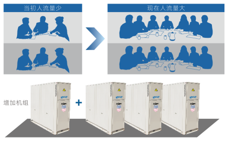 随着人流量加大及气候变暖,现有中央空调主机在大厦负荷高峰期时冷量不足,WGZ-B5系列搬运方便且冷量增容灵活,在现有系统小幅扩容中有非凡的灵活表现。