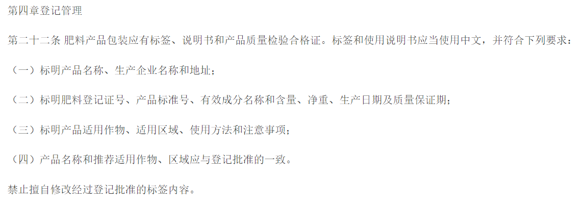 从规定中可以看出,正规产品标注应该有中文说明书,产品名称,生产企业名称和地址。要标明肥料登记证号、产品标准号、有效成分名称和含量、净重、生产日期及质量保证期;标明产品适用作物、适用区域、使用方法和注意事项;产品名称和推荐适用作物、区域应与登记批准的一致。《农业肥料登记管理办法》中有一条规定“禁止擅自修改经过登记批准的标签内容。”正规厂家严格按照此规定对产品内容进行标注,而非正规厂家一般在这一条上做文章,在产品标签上标注的所含成分内容多,例如含氨基酸水溶肥国家标准为氨基酸和微量元素指标,而很多厂家除了标注氨基酸和微量元素外,还标注其他成分在标签上,明显不符合国家规定。