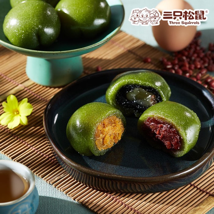 好产品自然源自于好原料,为了进一步还原青团的味道,三只松鼠携手宁波荃顺,坚持选择当地鲜艾叶为主要,粉碎研磨之后加入糯米粉,辅以黑土地优质芝麻小豆、海南光照滋养大芒果、纯粹鲜肉、45天腌制咸蛋黄,打造了四种不同口味的青团,包含了芝麻乳酸菌、豆沙、肉松蛋黄、芒果,同时富含氨基酸、钙、铁、维生素B2等微量元素。采用混合包装,一包不仅只有一种口味,它还有一个创意的名字,叫做踏青团。