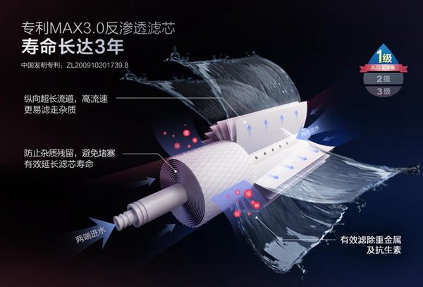 专利MAX 3.0反渗透滤芯,寿命长达3年