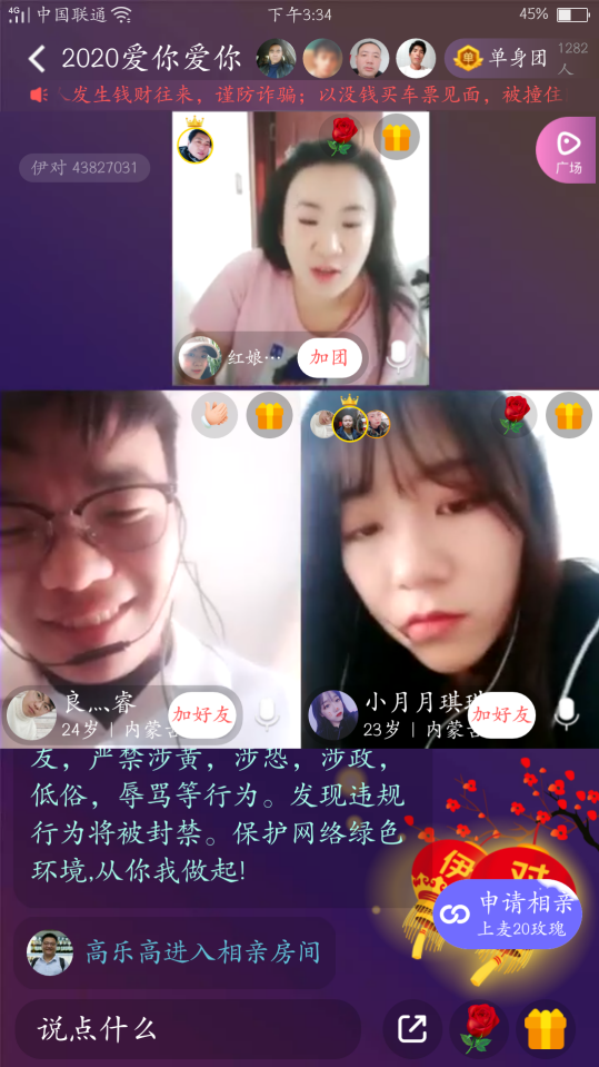 视频相亲模式中,用户可以体验多种互动方式,比如视频相亲,多人交友,专属相亲,偶遇,也可以围观他人相亲。花样式相亲,让用户更容易找到爱情。业内人士表示,视频即将成为下一代社交语言,而视频交友也将成为下一个互联网现象级风口。