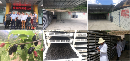 四川省凉山州桑葚烘干项目,采用5个烘干房,分别配两台WBC-21.0H-B-S(BL-H2)华天成烘干除湿一体机,共10台设备,烘干温度在40℃到55℃,单烤房处理3吨桑葚,烘干时间30到40个小时。该项目提高烘干效率和质量,最大程度上增加种植户的收益,对此当地政府和行业主管部门也给予高度的评价。