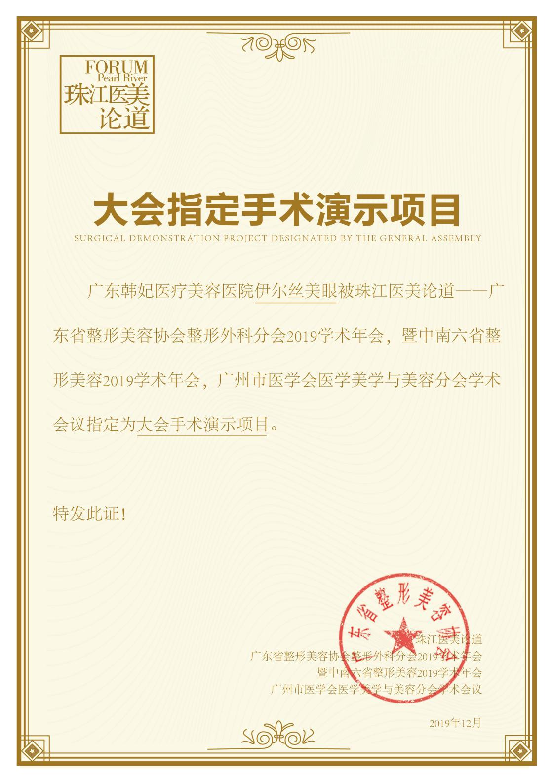 广东韩妃医疗美容医院的伊尔丝美眼术,在韩妃承办的2019省整协学术年会上作为特邀演示项目进行了现场手术操作直播演示,数百名同行专家一起进行观摩学习,韩妃美眼专家李光琴院长并就伊尔丝美眼的技术原理剖析、操作难点等方面进行了全面分享、讲解,现场行业专家对伊尔丝美眼术进行了高度赞赏和肯定!