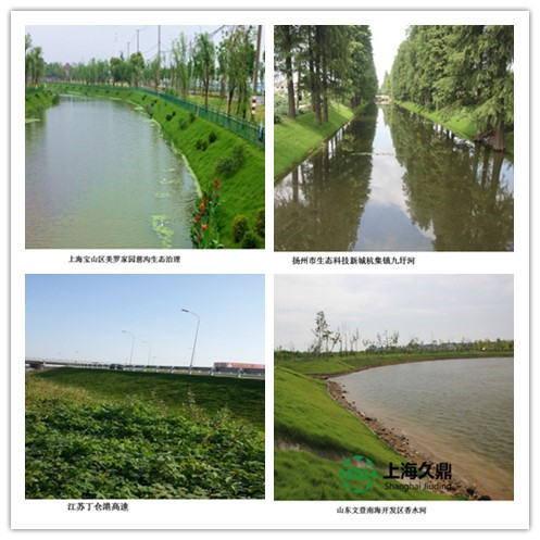 2015年上海迪士尼乐园外围河道护坡工程为乐园系上了一条“绿腰带”。 2015年上海市重点工程青草沙水库及周边水系采用久鼎绿化混凝土保护上海水源地。2011年浙江富春江工程经受住了13年6月流量高达5100m3 /s,流速大4m/s,水位达12m高程的洪水冲刷考验。2013年四川岷江工程在植草3个月后经受住了特大暴雨。黑臭河道治理工程2013年江苏启东横河,宝山潘泾河工程,实现了水清河畅、岸绿景美、人水和谐的新面貌;硬质护坡改造工程上海徐汇桂林西街景观河道、浙江长兴环太湖大堤原硬质护坡改造工程,在不破坏原硬质护坡的基础上实现河道景观性和生态性;中小流域综合治理工程湖南汨罗江、湘江治理,上海市中小河流生态治理重点工程美兰湖周边水系工程建设,实现了河道提高防洪标准与河岸景观生态建设的协同发展;盐碱地沙质土工程2011年完工山东威海香水河护岸、2013年上海崇明横沙岛海提工程,完美解决了盐碱地种草难,沙质土护坡难的困局;高速公路2012年完工江苏丁仓港高速,2012年完工江苏启东建设局屋顶花园绿化工程也得到了业主、专家及领导的一致好评。久而久之,上海久鼎被业界形象地称为了“河道医院”的美誉。