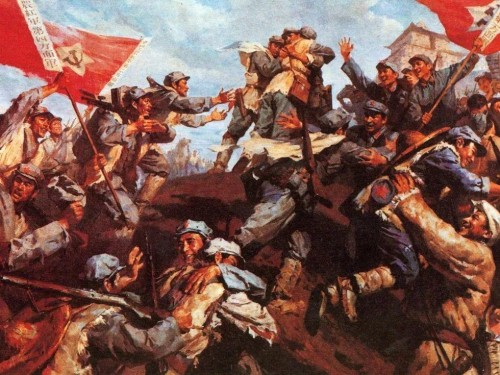 金沙水拍云崖暖,大渡桥横铁索寒。